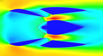 Proof-of-Concept flow studies have been completed, and we are advancing toward prototyping. The above CFD image clearly shows the high velocity that is achieved as flow enters the side duct and strikes the internal wing. This creates a deep suction vortex behind the rotor, which pulls water through the funnel and augments energy extraction.  This method employs both pressure-based physics as well as velocity-based physics to overcome the difficulties of generating power on slow-moving waterways.